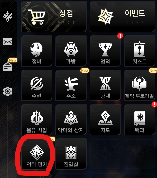 메인메뉴 - 상점 - 의뢰 편지에서